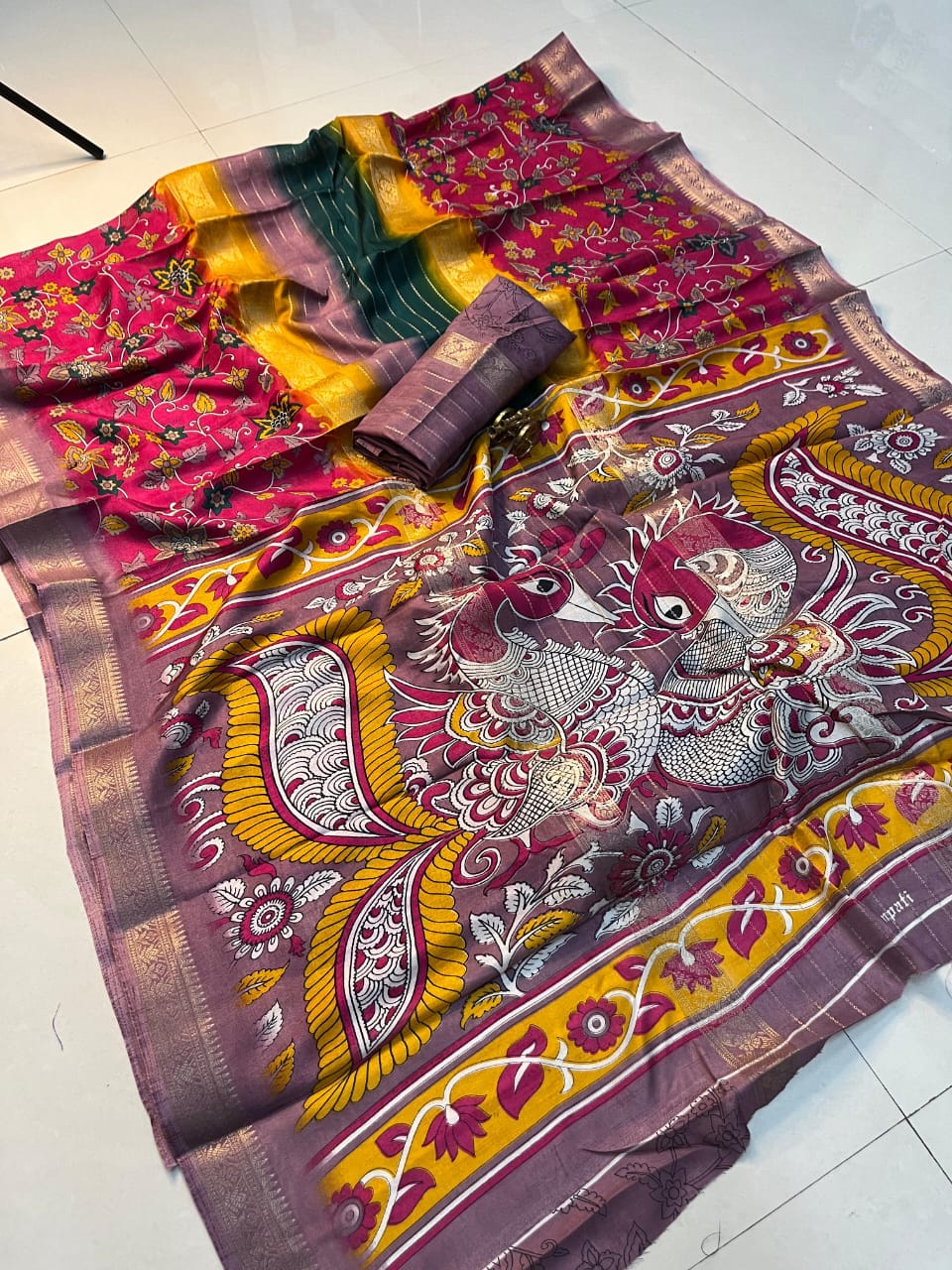 Fabric & Design: Premium Jacquard weaving with rich Ajrakh-style patterns